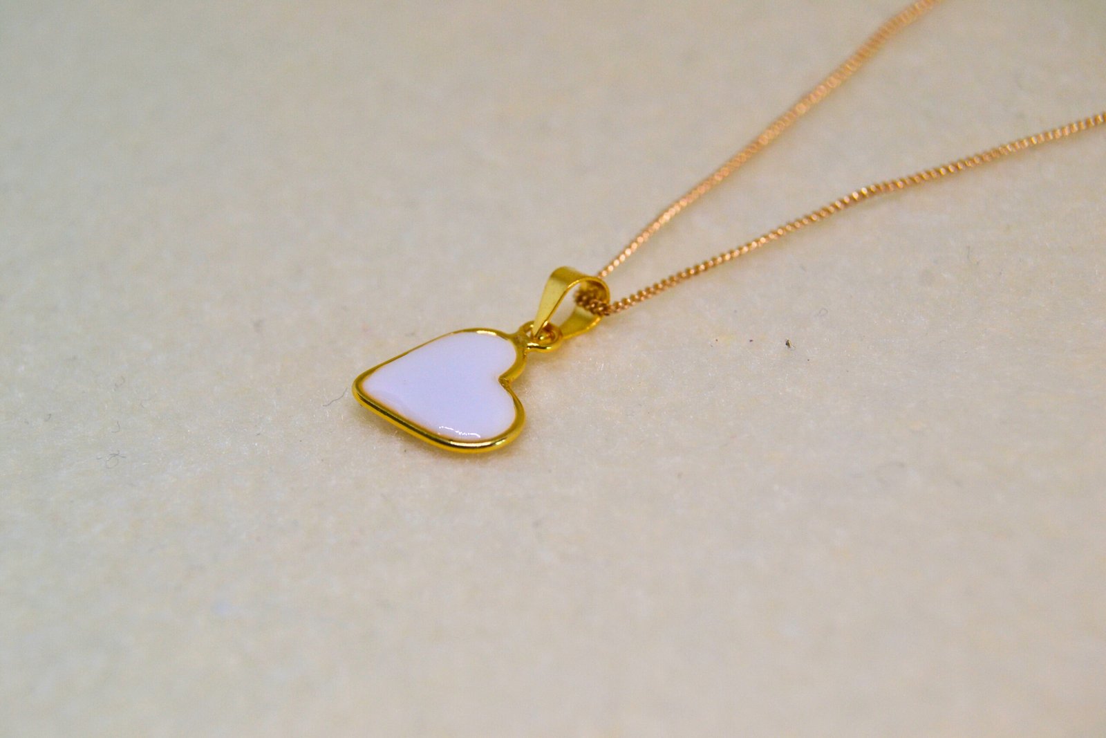 Colgante en plata de ley bañada en oro, con forma de corazón y bisel trasero para grabado. Personalizable con leche materna, cordón umbilical, test de embarazo o cabello. Una joya para conservar tu historia de maternidad.